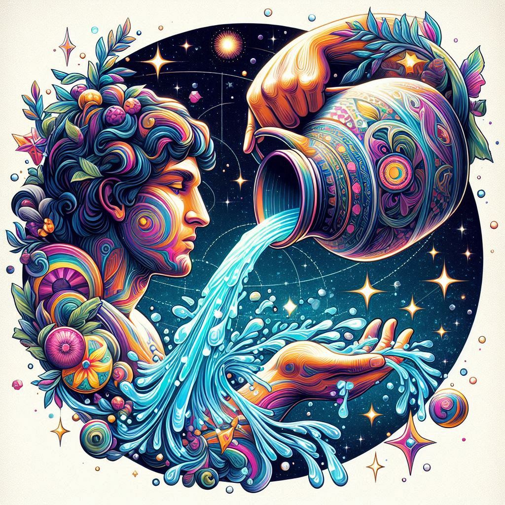 별자리의 상징은 물병을 들고 있는 사람으로, 이는 지식을 세상에 흘려보내는 것을 의미합니다. 전통적으로 물병자리는 천왕성(Uranus)과 관련이 있으며, 개혁적이고 진보적인 에너지를 상징합니다.